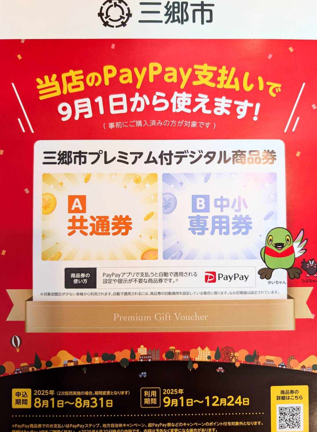 当店で三郷市プレミアム付デジタル商品券ご利用出来ます