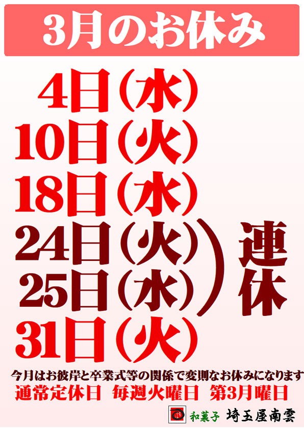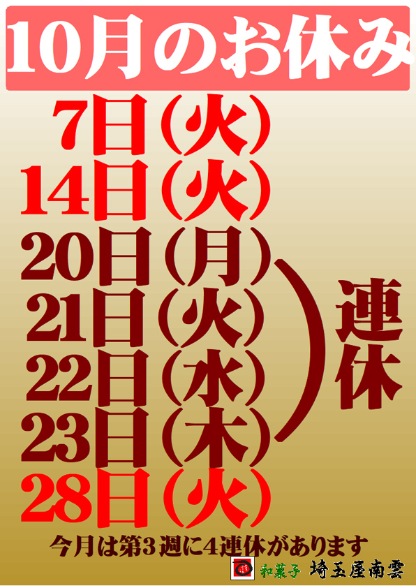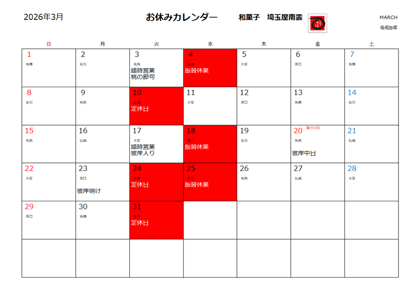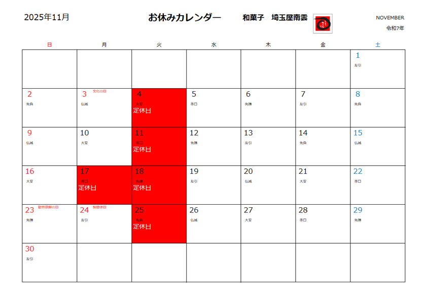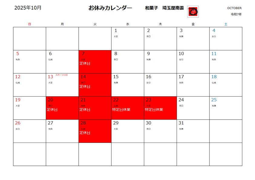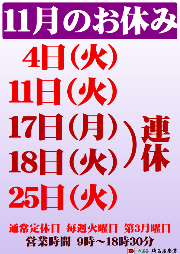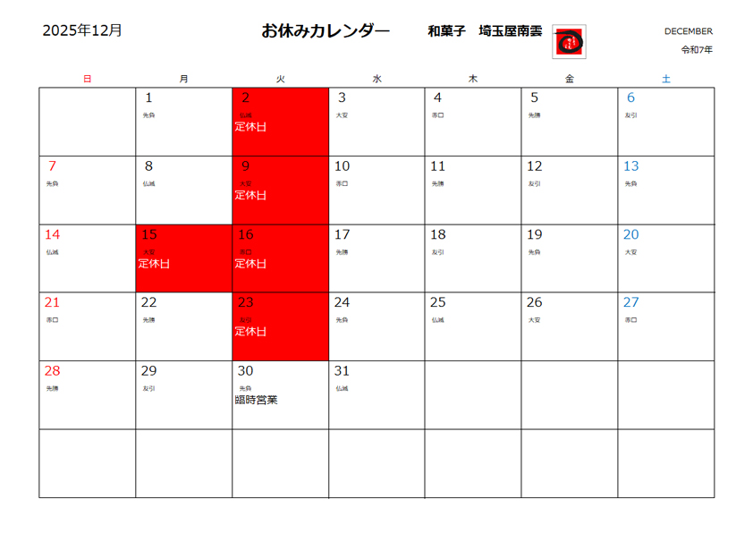 ※営業日については上記のお休みカレンダーを参照にして下さい